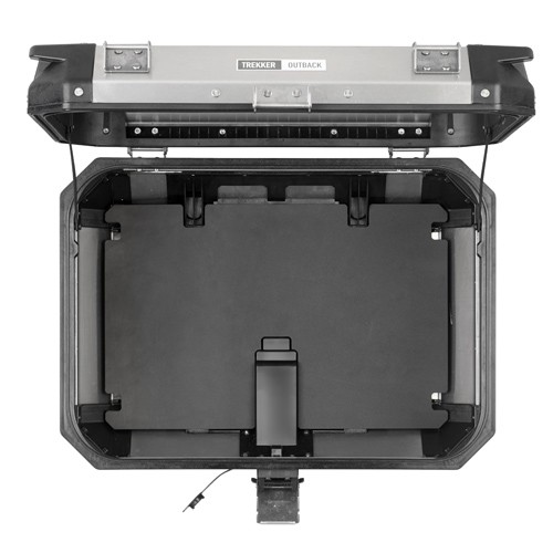 Top-case Trekker Outback con struttura in alluminio e bordi in alluminio profilato.  possono essere fissati su qualsiasi modello esistente di piastra Monokey.