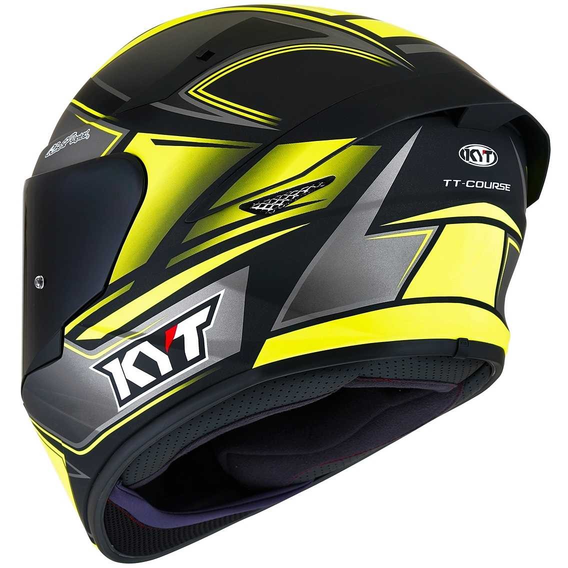Casco integrale moto Kyt TT-Course Tourist nero opaco giallo matt yellow fluo helmet casque
