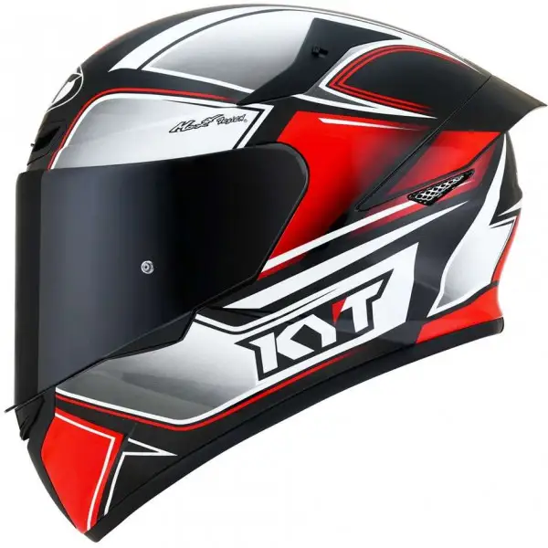 TT-REVO, il casco integrale racing di KYT in termoplastica con tecnologia ADT-Advanced; le sue affascinanti ed estreme forme sono state profondamente studiate in galleria del vento  Per raggiungere le migliori performances aerodinamiche senza tralasciare l’aspetto stilistico ed ergonomico. La raffinata meccanica del meccanismo visiera è stata disegnata per offrire al contempo praticità d’uso ed efficienza.