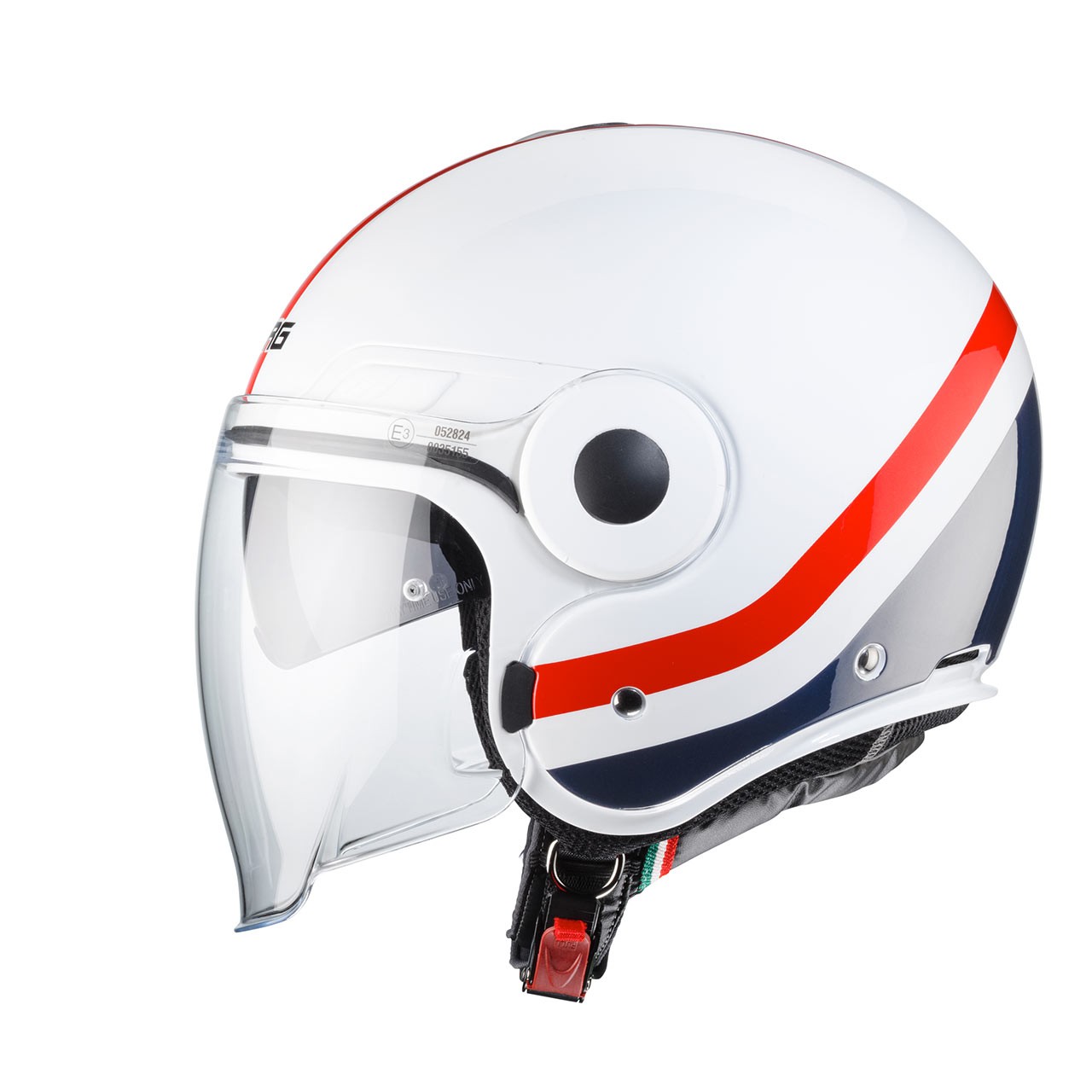 Casco jet moto scooter visiera lunga e occhiale parasole Caberg Uptown Chrone bianco rosso blu white red blue helmet casque