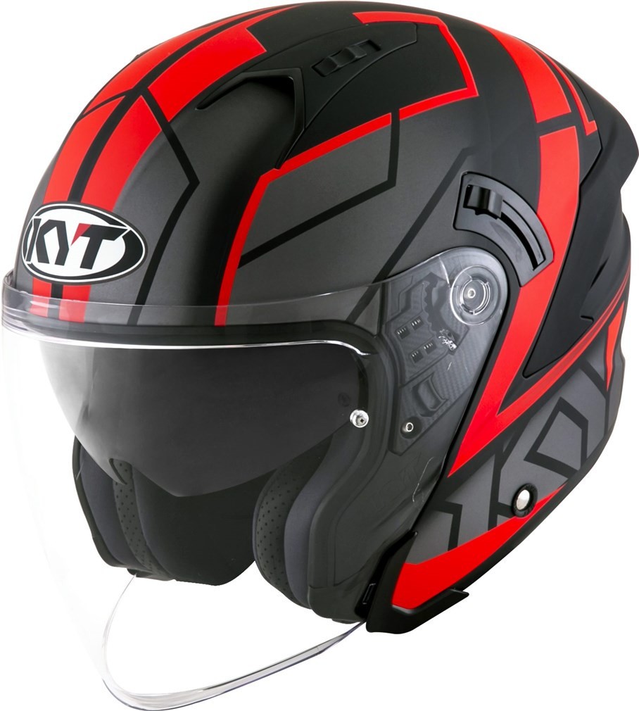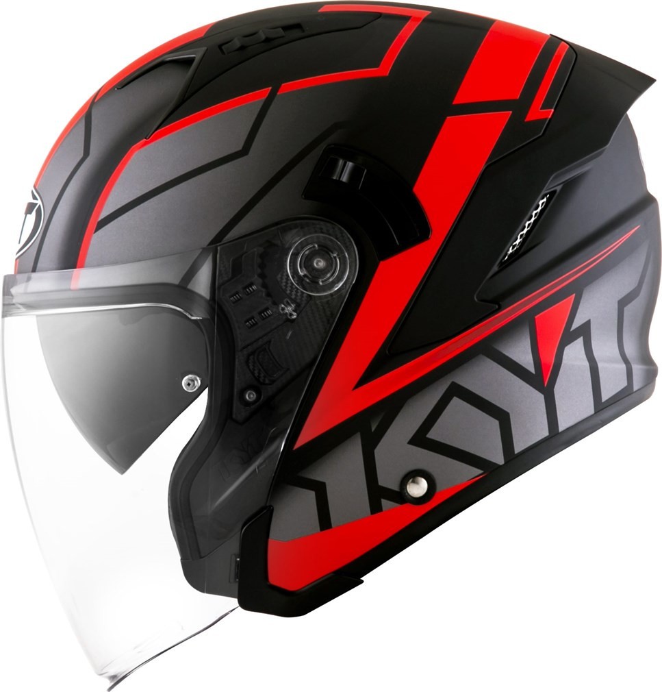 Casco jet KYT NF-J Motion mat red fluo helmet casque
