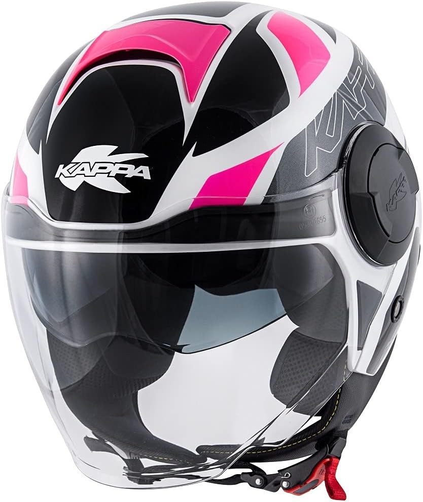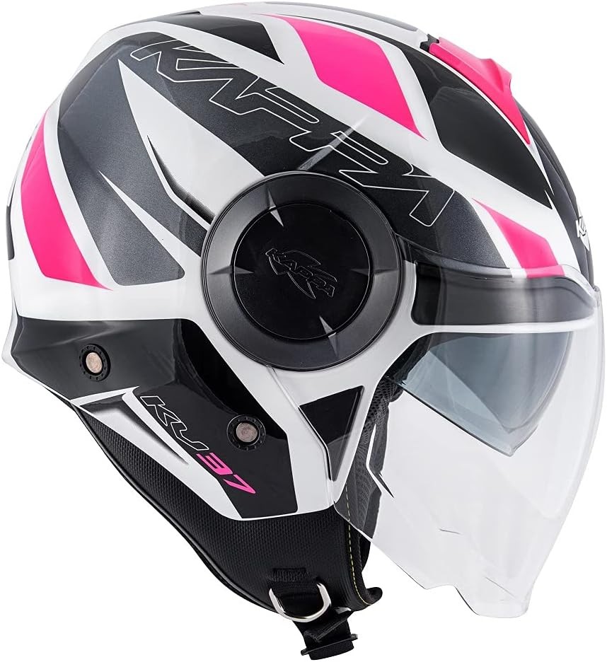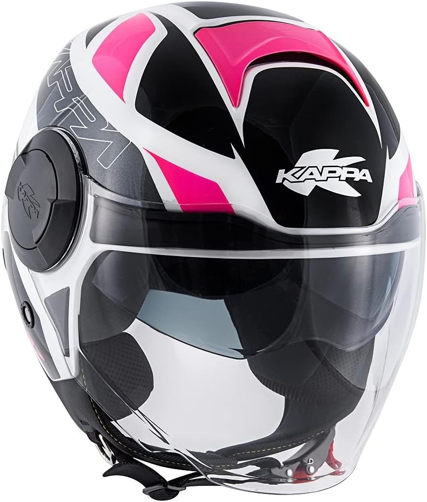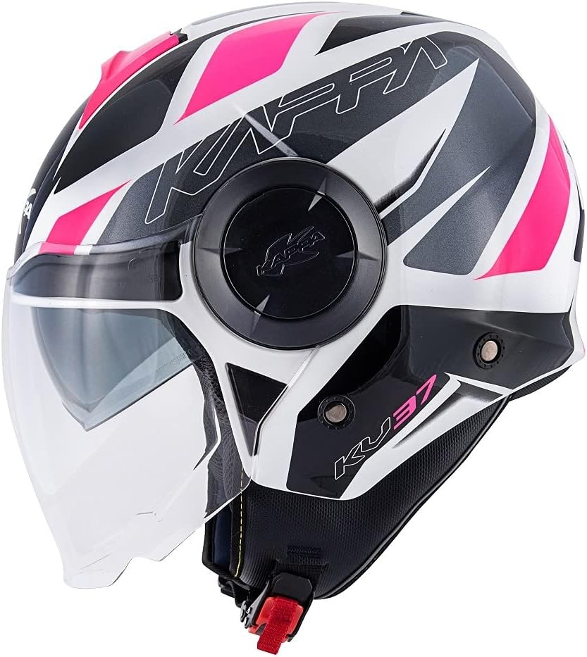 Casco jet con doppio visierino Kappa Kv37 Oregon Zone ready white titanium fucsia helmet casque