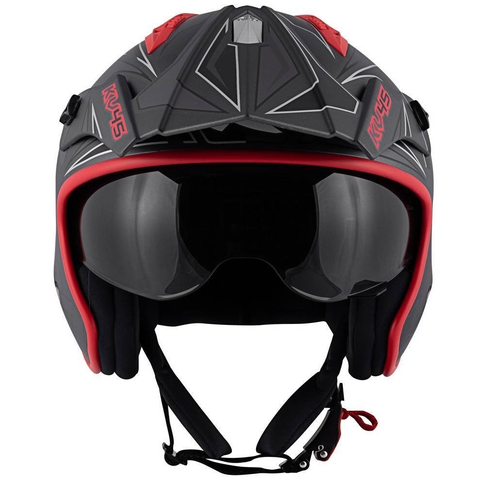 Casco jet moto enduro off road Kappa Kv45 Trial Gemini titanio rosso nero opaco titanium black mat red helmet casque