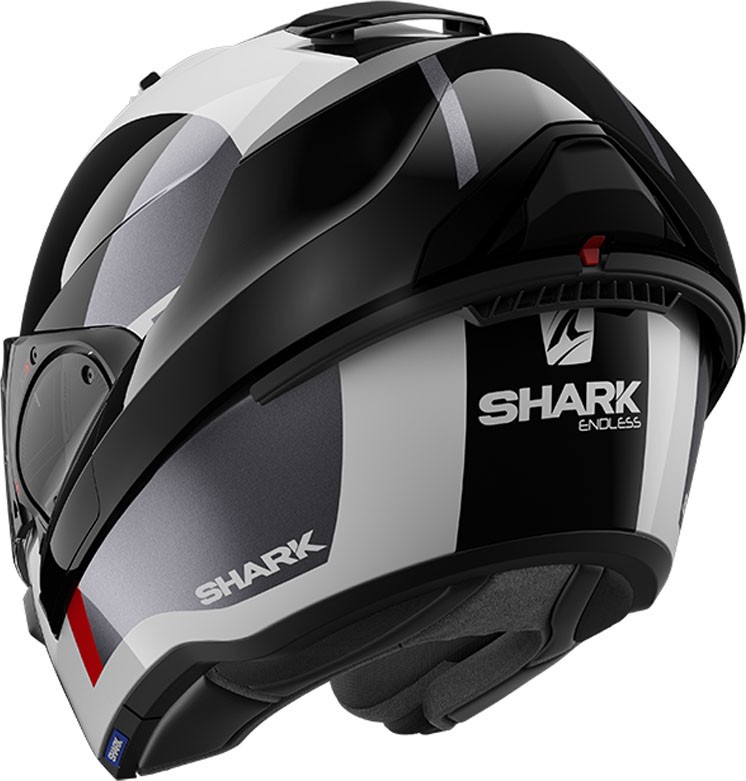 Casco modulare Shark Evo Es Endless bianco nero rosso white black red WKR helmet casque