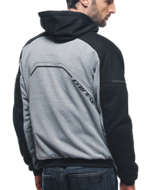 Felpa Dainese in morbido tessuto con protezioni morbide Pro-Shape 2.0 su spalle e gomiti e sistema per fissare gli auricolari bluetooth.