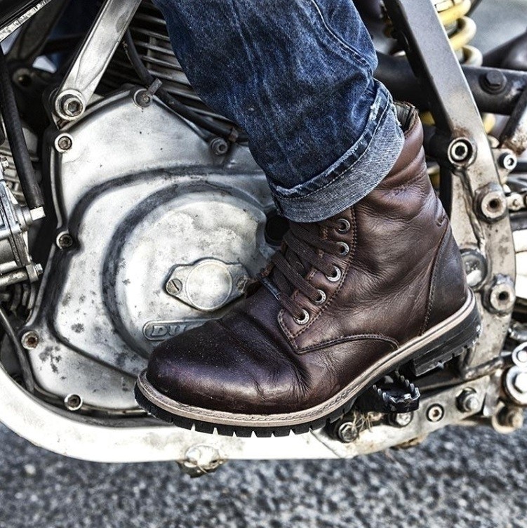 Stivale cafè racer destinato anche ad un uso urbano, grazie alla sua semplicità di linea ed all'utilizzo di pelle pieno fiore naturale scelta esclusivamente da pezzi pregiati, caratterizzata da particolari di dettaglio e protezioni che assicurano sicurezza anche per un uso quotidiano, venduta con paracambio abbinato.
