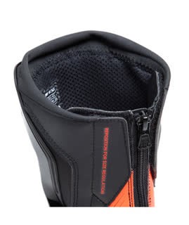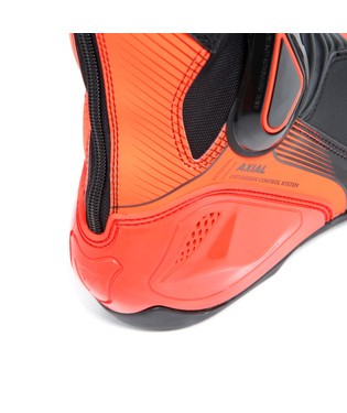 Dotati di slider sostituibili in termoplastica, l'esclusivo sistema protettivo Dainese Axial Distorsion Control System e inserti in Nylon sul tallone, garantiscono alti livelli di protezione, massimo comfort e leggerezza.